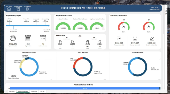 Projelerinize ait verileri derinlemesine analiz ederek, size özel iş zekası raporları sunuyoruz. Bu raporlar, projelerinizin mevcut durumu, ilerlemesi ve hedef plana göre sapmaları hakkında kritik bilgileri içermektedir.